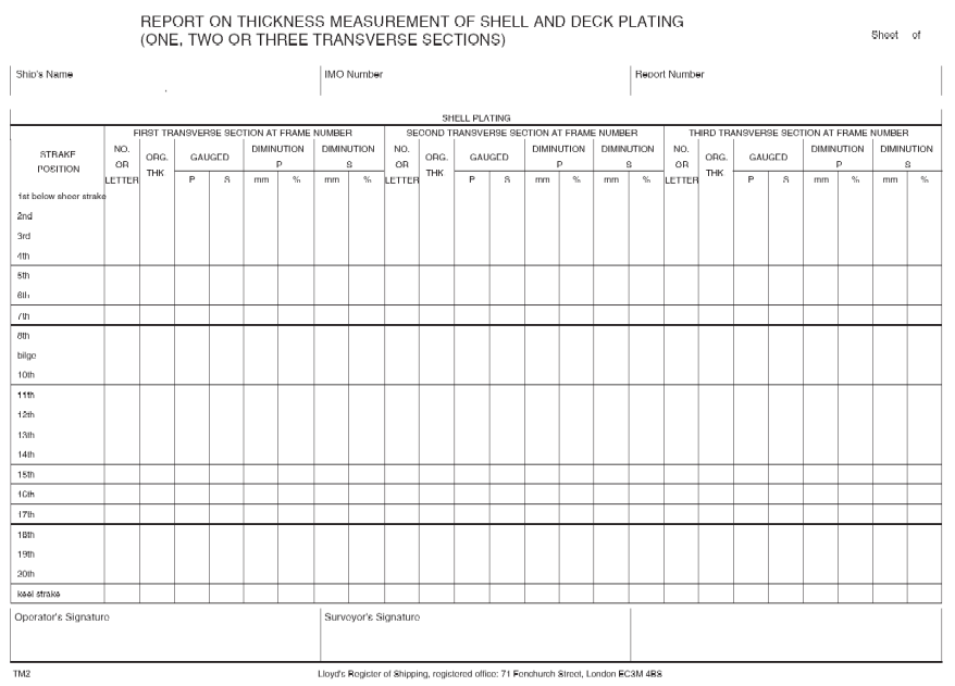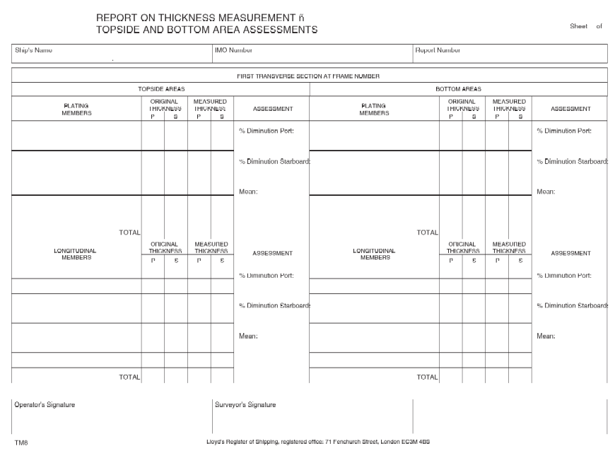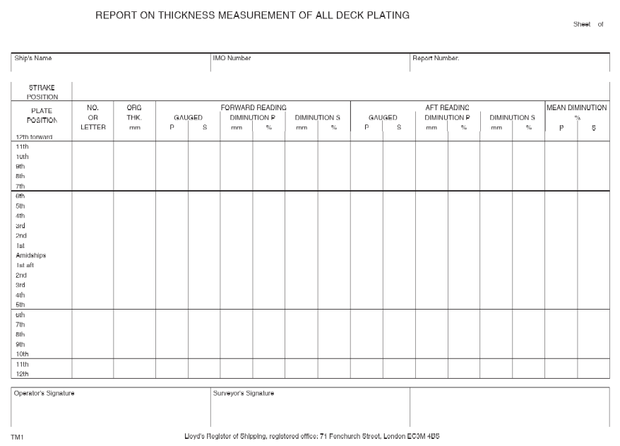 Clasifications Register Guidance Information - Naval Survey Guidance for Steel Ships, January 2001 - Chapter 25 Appendix 6 Form TM1 - Section 1 Form TM1