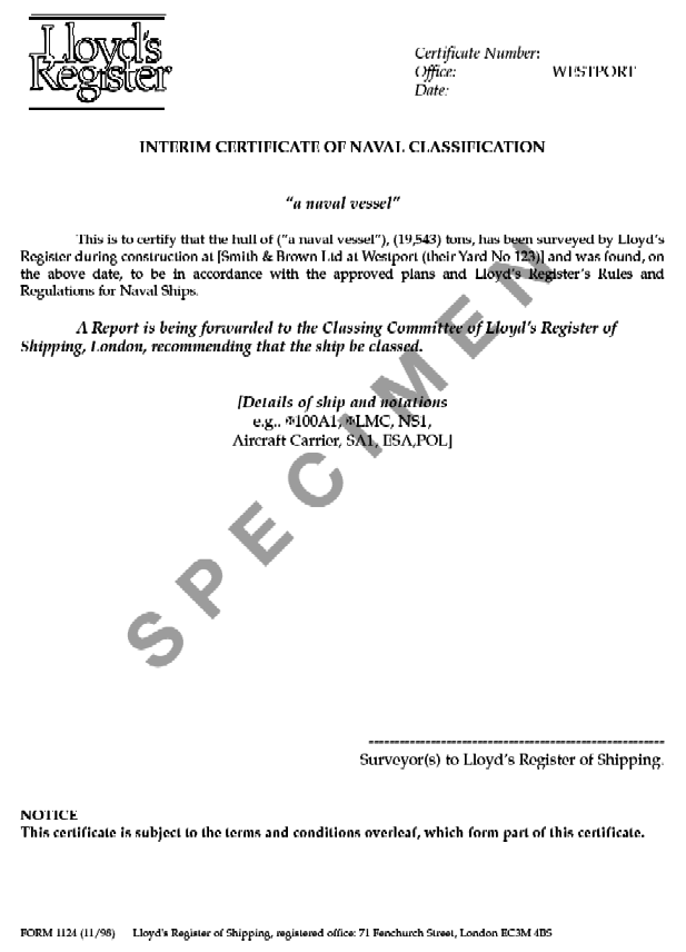 as far as possible, use the wording shown in Figure 2.2.1 Example Interim Certificate (Hull). This wording has been carefully chosen and considerable