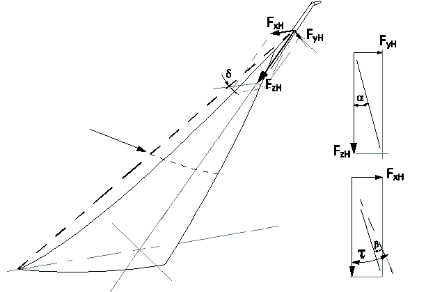 distributed over the sail. Hence the fraction µ will be 0,5; load-distribution