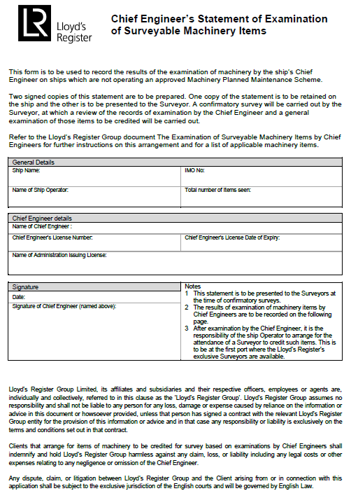 Figure 3.3.1 Chief Engineer’s Statement of