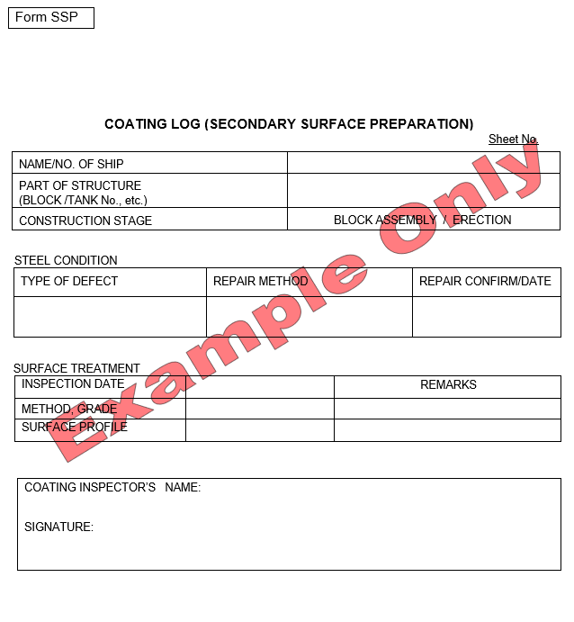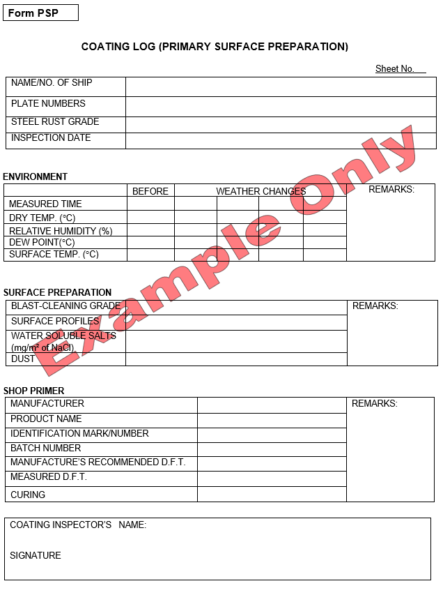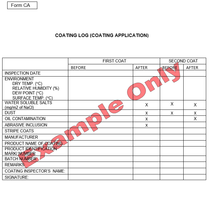 out-fittings, reference standards, inspection notice, coating log