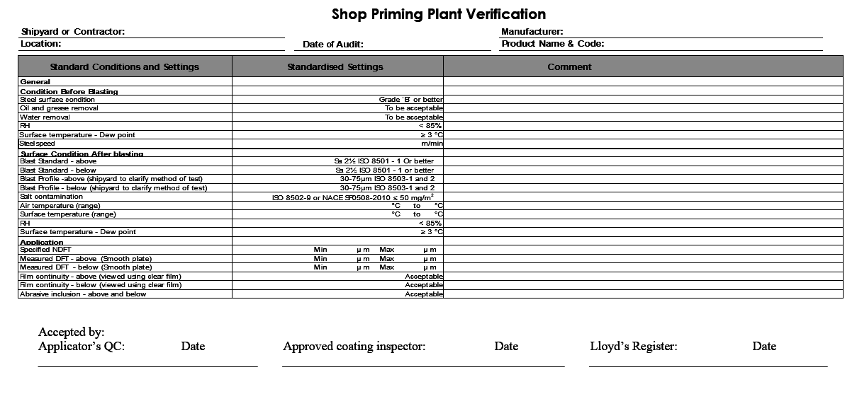 1.1.4 The selected coating system shall have an LR Type Approval Certificate. The shop