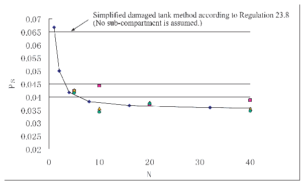 of damage for longitudinal sub-compartment, in small order of 1-Psf (j) and Psa(j), j = 1~nsx