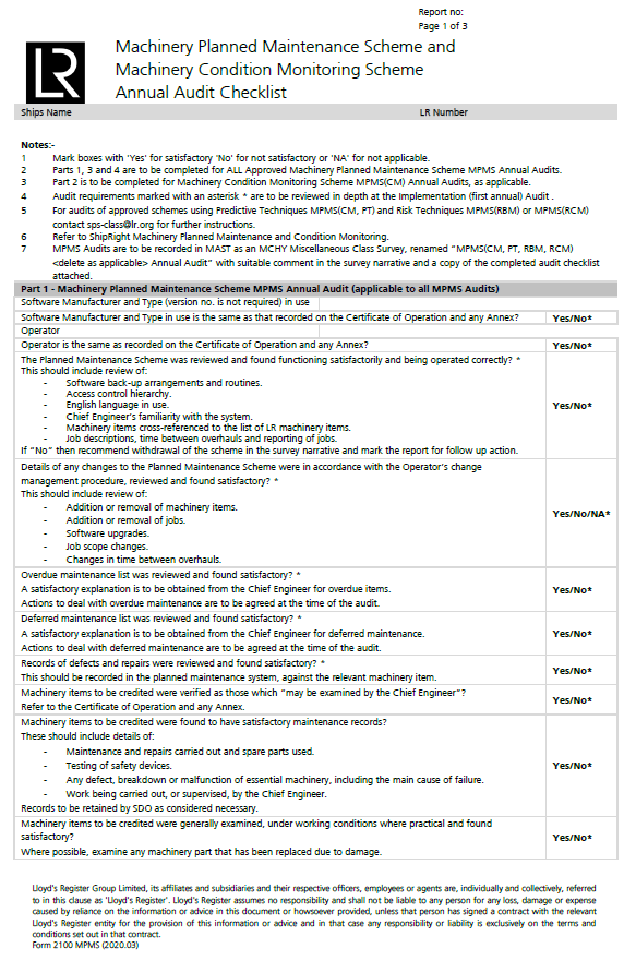 operating an approved Machinery Planned Maintenance Scheme.