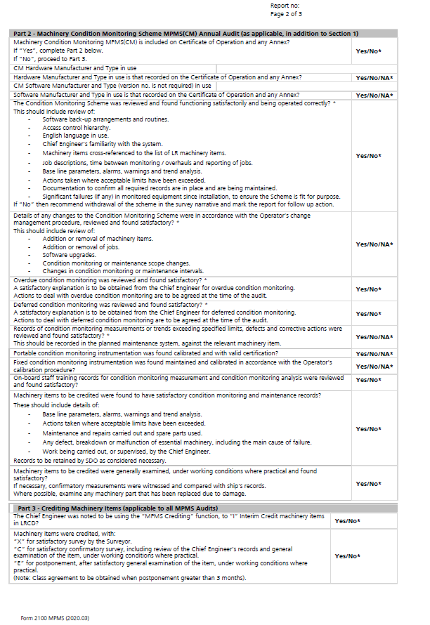 Scheme and Machinery Condition Monitoring Scheme Annual Audit Checklist –