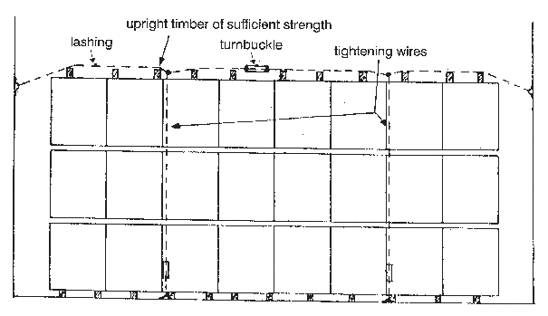 Figure 5 Securing of end row in top tier against fore-and-aft shifting