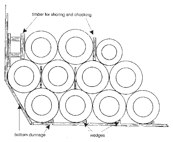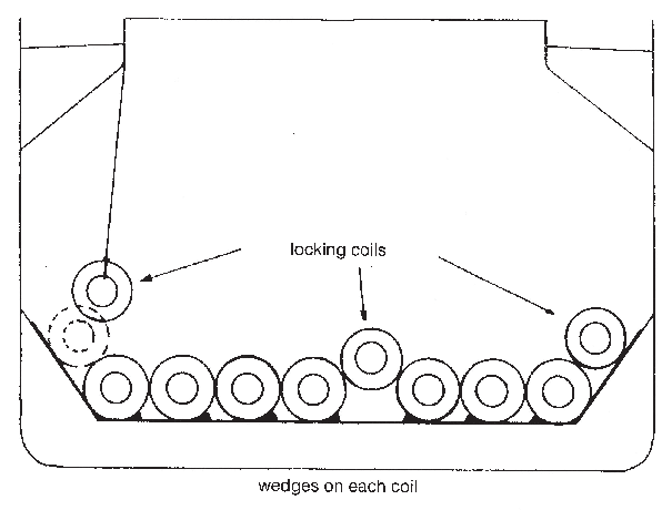 2.2 Coils should be stowed on dunnage laid athwartships.