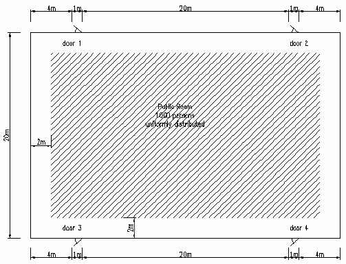 (see figure 3) uniformly distributed in the room. Persons leave via