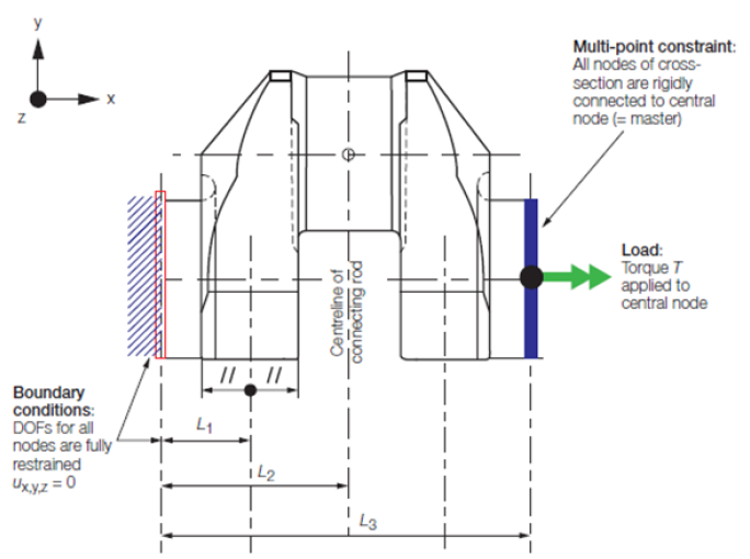 rod. This node is connected to all nodes of the pin cross sectional area. Warping of