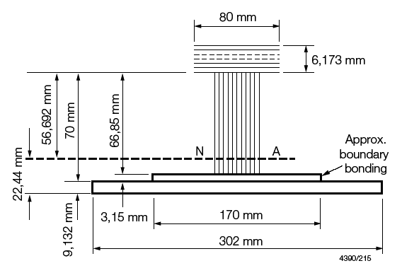 of 3,15 mm over an (85 x 2) mm width to account for both flanges.