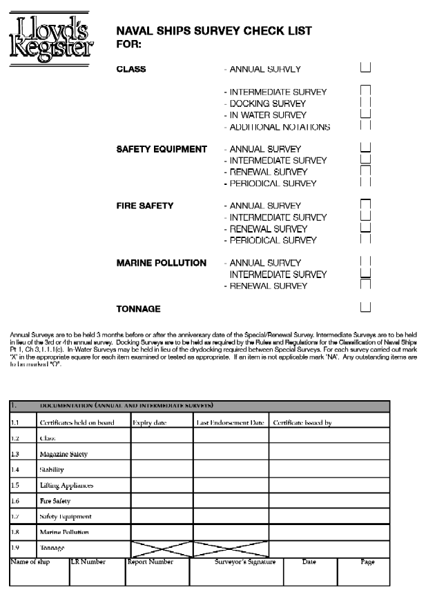 Clasifications Register Guidance Information - Naval Survey Guidance for Steel Ships, January 2001 - Chapter 24 Appendix 5 Form 2113(N) - Section 1 Form 2113(N)