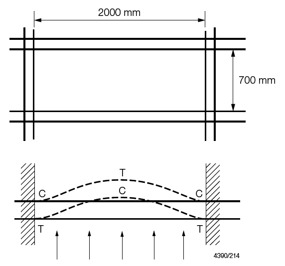 model as shown in Figure 4.4.1 Regions of tension (T) and compression (C) in example model.