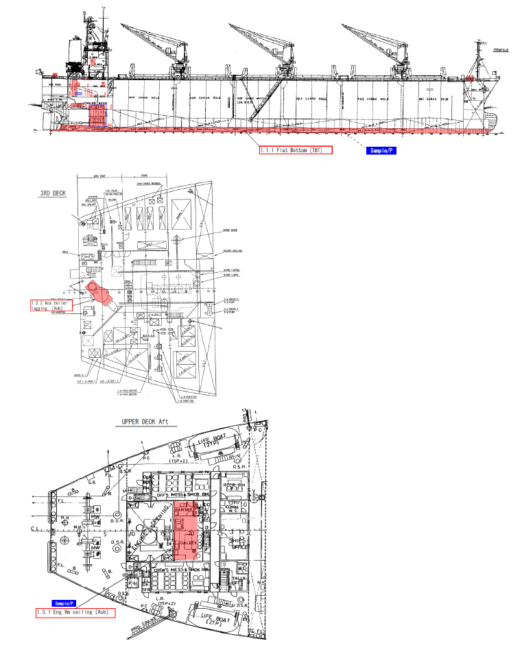 equipment, systems, and/or areas on board the ship to determine the presence or