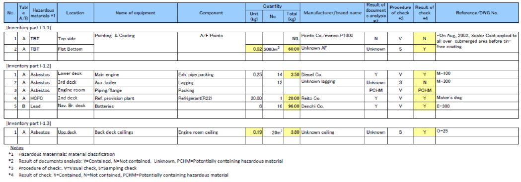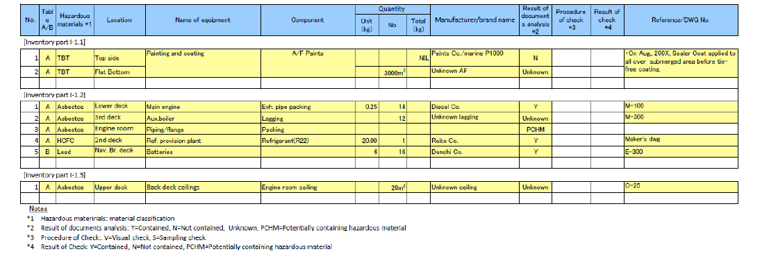 Inventory of Hazardous Materials for existing ships, documents of the individual