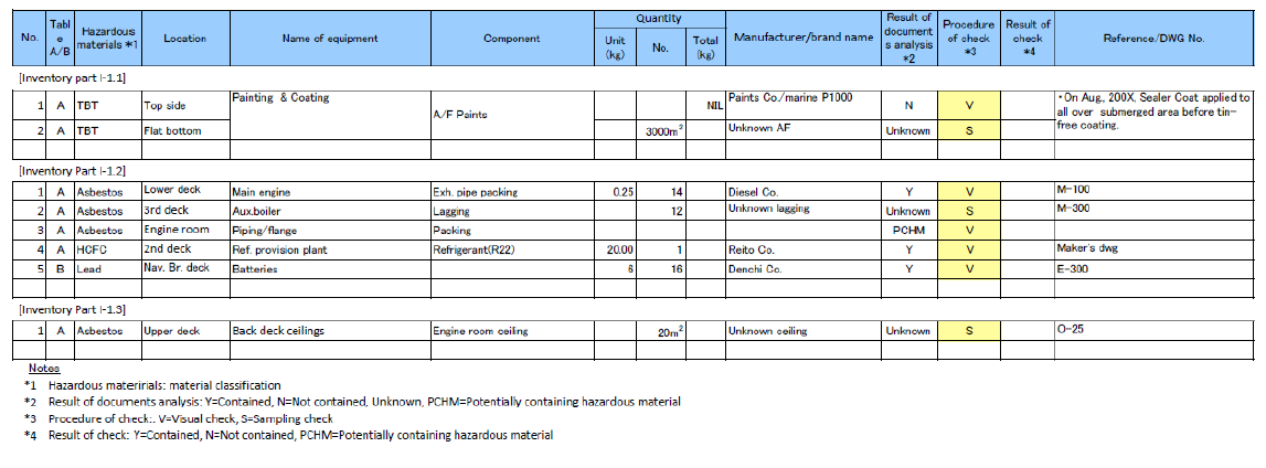 Part I – hazardous materials contained in the ship's structure and