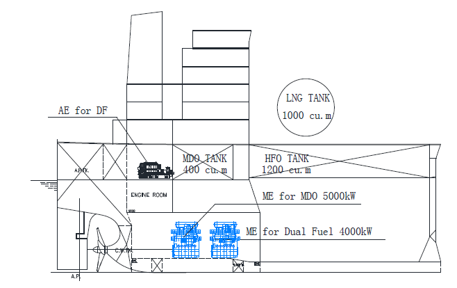 dual-fuel auxiliary engine (LNG, pilot fuel MDO, no shaft generator) which LNG could be