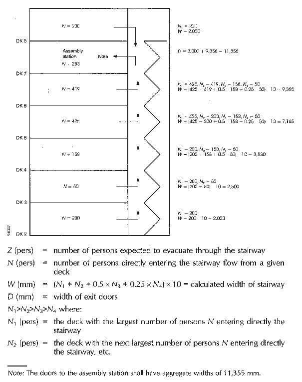Figure 2 Minimum Stairway Width (W) Calculation Example
