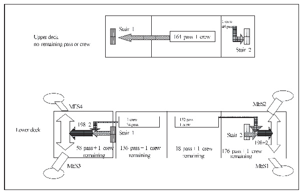 of corridor 2 two groups are formed, each composed by 99 passengers