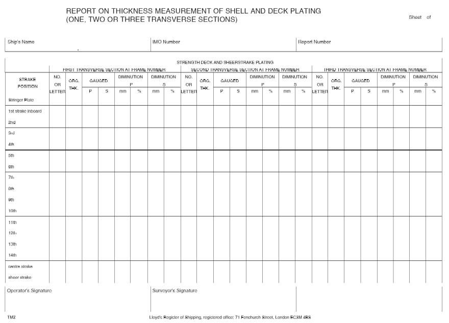 Clasifications Register Guidance Information - Naval Survey Guidance for Steel Ships, January 2001 - Chapter 25 Appendix 6 Form TM1 - Section 1 Form TM1