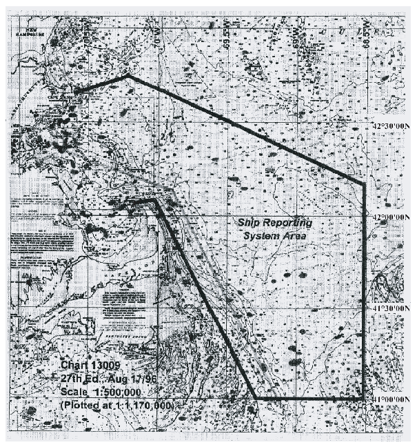 Statutory Documents - IMO Publications and Documents - Resolutions - Maritime Safety Committee - Resolution MSC.85(70) - Mandatory Ship Reporting Systems - (adopted on 7 December 1998) - Annex 1 - Description of the Mandatory Ship Reporting Systems for Protection of Endangered North Atlantic Right Whales in Sea Areas off the Northeastern and Southeastern Coasts of the United States - Ship Reporting System Area (1)