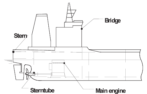 It is normal to measure hull girder response at the stern or,