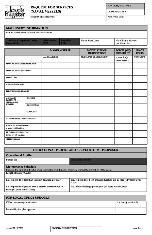 Clasifications Register Guidance Information - Naval Survey Guidance for Steel Ships, January 2001 - Chapter 20 Appendix 1 Request for Services (Naval Vessels) - Section 1 Request for Services (Naval Vessels)