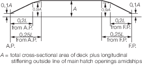 and edge reinforcement for openings in the upper deck forward of 0,25L from the F.P. and aft of 0,25L from the A.P.