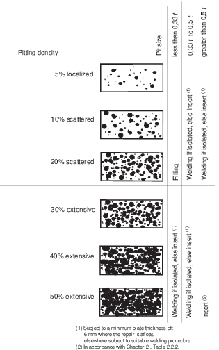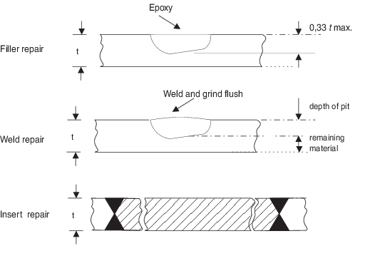 shallow pitting less than 0,33t may be repaired by filling
