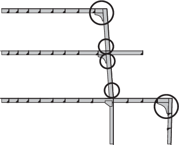length of the structure by attaching it to large items of equipment