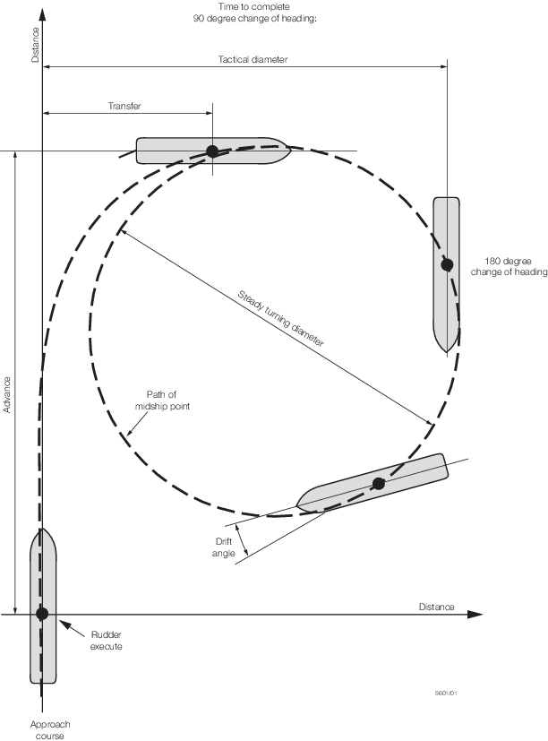 - The initial turning ability of the ship, required by Vol 3, Pt 1, Ch 4, 2.3 Manoeuvres to be assessed 2.3.1.(d), can be measured during