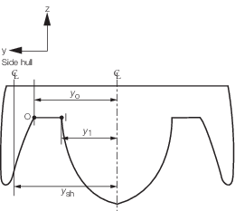Points I and O are given in Figure 4.3.2 Distances and locations for splitting loads. Moment values at locations on the cross-deck between