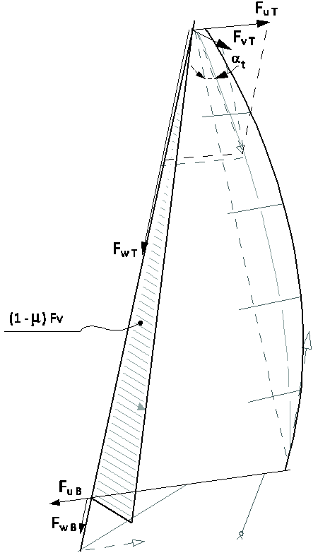 distributed over the sail. Hence the fraction µ will be 0,5; load-distribution