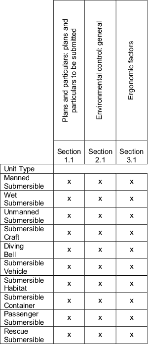 Clasifications Register Rules and Regulations - Rules and Regulations for the Construction & Classification of Submersibles & Diving Systems, July 2022 - Main and Auxiliary Machinery, Systems and Equipment - Environmental Conditions - Applicable Unit Types