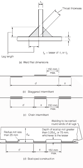 well rounded with smooth edges. Details of scalloped construction are shown in Figure 4.7.1 Weld dimensions and types.