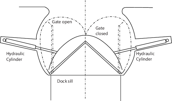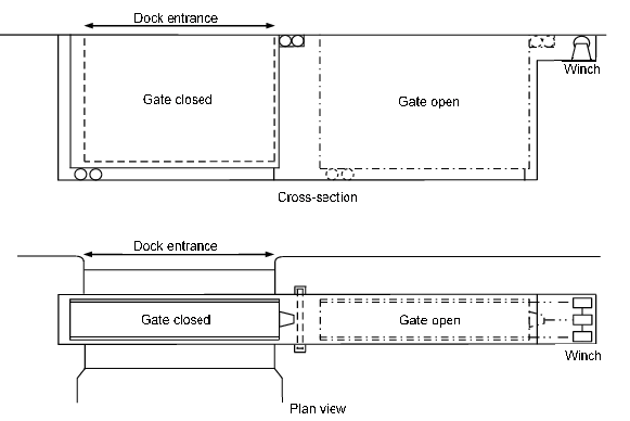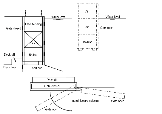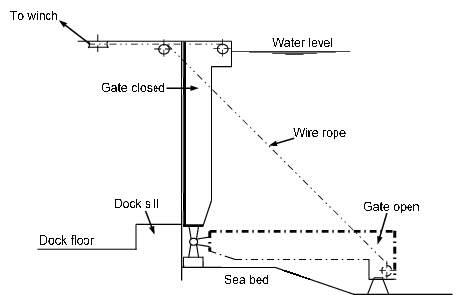 entrance to the dry dock. Floating dock gates can also be hinged at the side of the