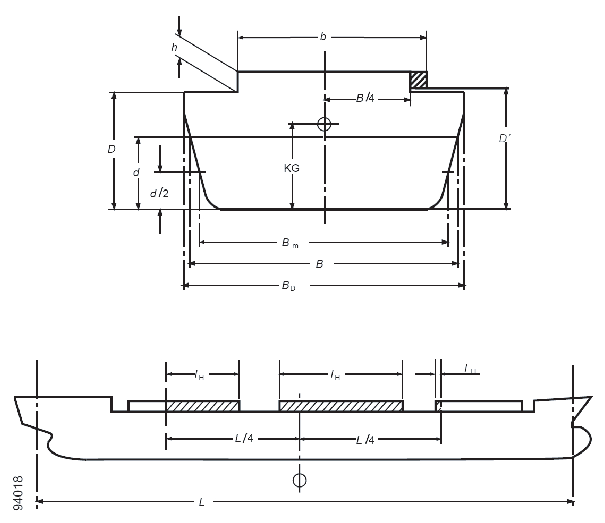 hatch coamings within L/4 forward and aft from amidships, in m (see figure 4.9-1);