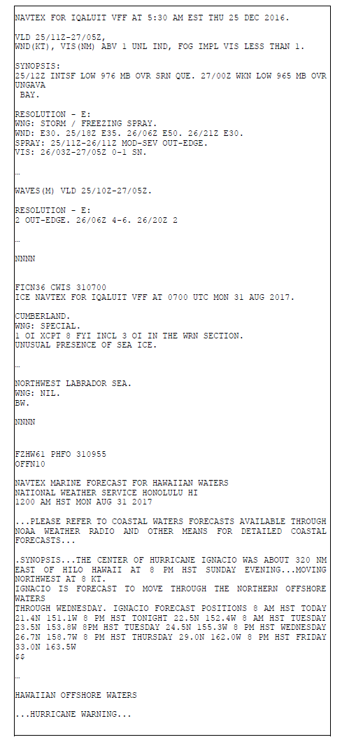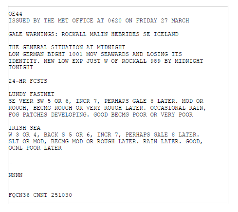coverage of a NAVTEX transmitter in a day; for them a 24-hour weather forecast