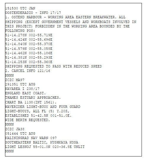 of Maritime Safety Information and A.706(17), World-Wide Navigational Warning
