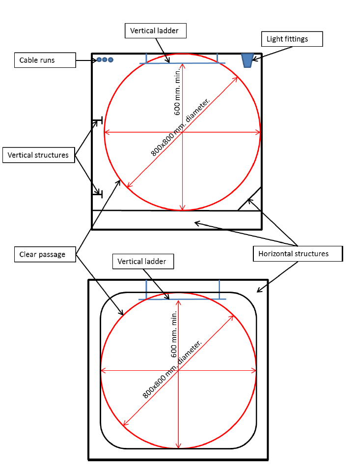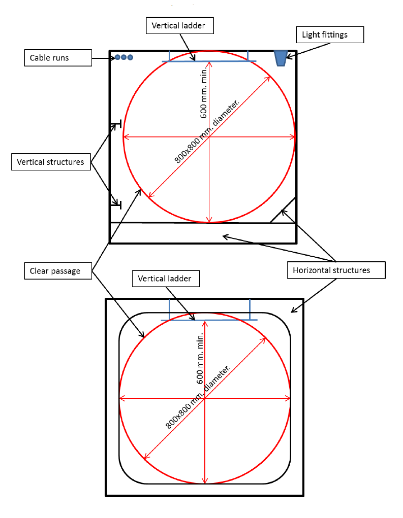 passage having diameter of 800 mm is available throughout the vertical enclosure, as