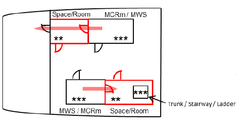 trunks or through spaces/rooms to a location outside the machinery space, which should