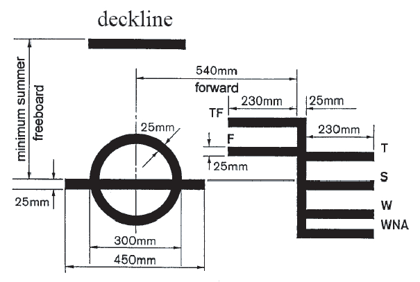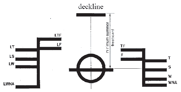 Figure 6.2 Timber load line mark and lines to be used with this mark