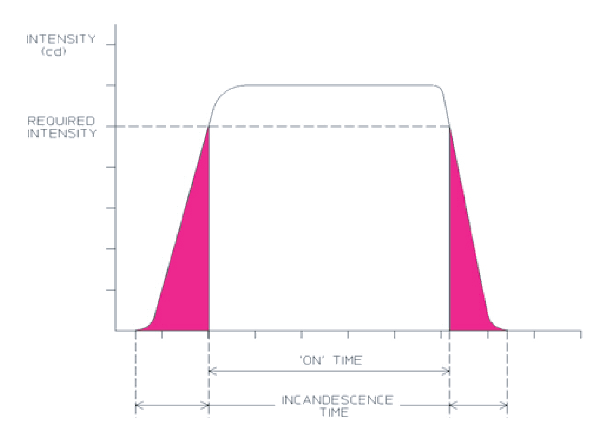 luminous intensity when the light switches off should be disregarded