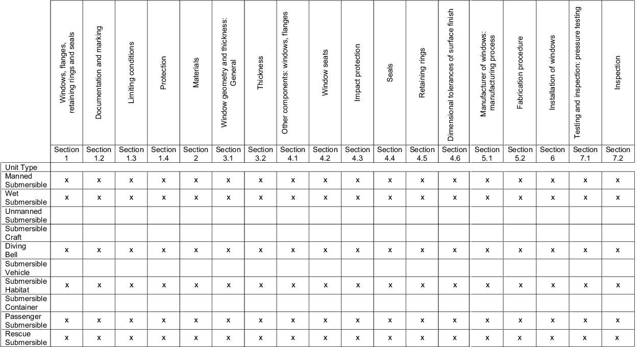 Clasifications Register Rules and Regulations - Rules and Regulations for the Construction & Classification of Submersibles & Diving Systems, July 2022 - Pressure Chambers - Acrylic Windows - Applicable Unit Types