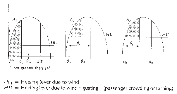 under the GZ curve (A2), i.e. beyond the angle of heel (Θh),