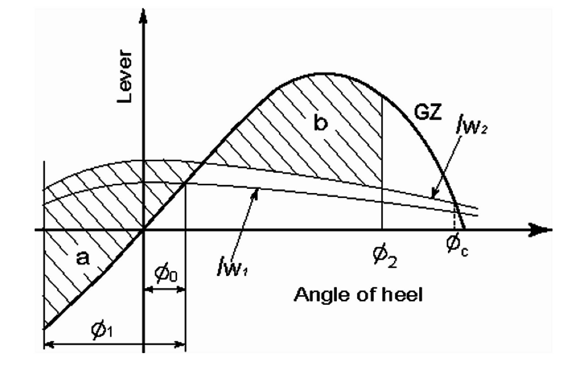 Figure 3.1.1 Weather criterion when the wind heeling lever is dependent on the