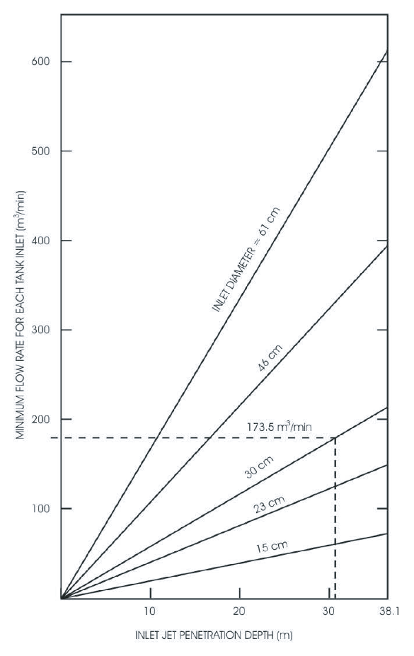 Figure 7-1 Minimum flow rate as a function of jet penetration depth. Jet penetration