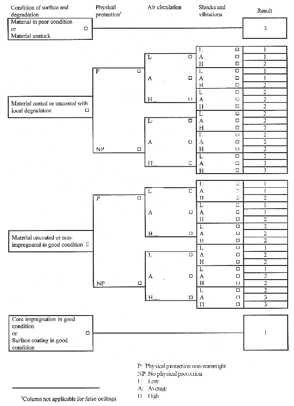 Figure 1. Evaluation of the state of conservation of flake coatings, lagging or false ceilings
