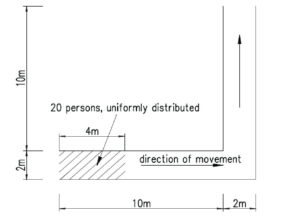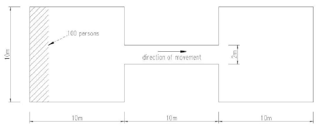 3 One person in a corridor 2 m wide and 40 m long with a walking speed of 1 m/s