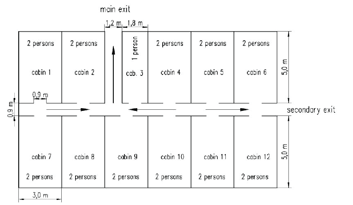 persons. The people in cabins 1, 2, 3, 4, 7, 8, 9, and 10 are allocated the main