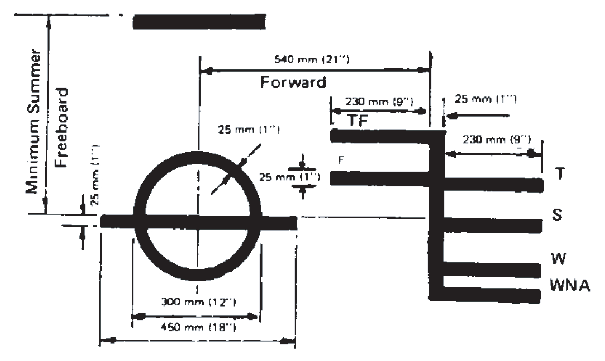 is intersected by a horizontal line 450 millimetres (18 inches) in